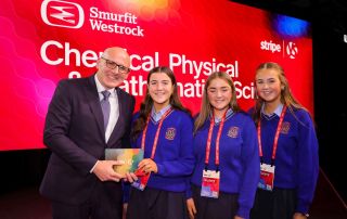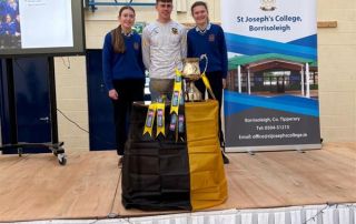 St Joseph’s College students were recognised across several categories. James Maher and Daniel Ryan Begley won the Research Ireland Societal Challenge Award for their investigation into protecting native Irish honey bees from the invasive Vespa velutina using sound waves. In addition,  Luke Ryan, Daniel Groome and Jack Groome — placed 2nd Intermediate Group (Health & Wellbeing) for their project mapping care gaps in an ageing Irish population. Meanwhile, Lucy Rabbitte, Aoibhe Hassett and Anna Meehan secured 2nd Intermediate Group (Chemical, Physical & Mathematical Sciences) for their study on how landing techniques in sport affect ACL strain. To round off a very successful event, Ms Gorey was awarded the Biological and Ecological Educator of Excellence Award
