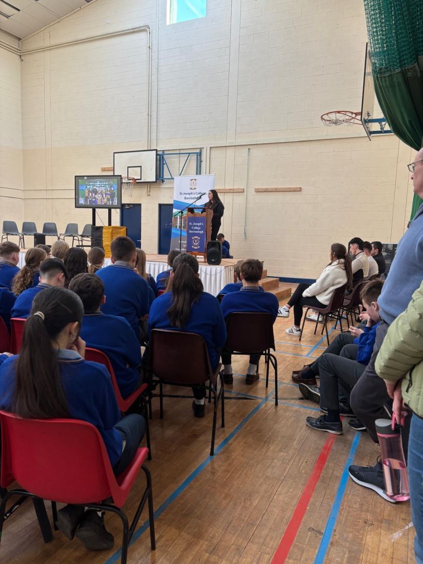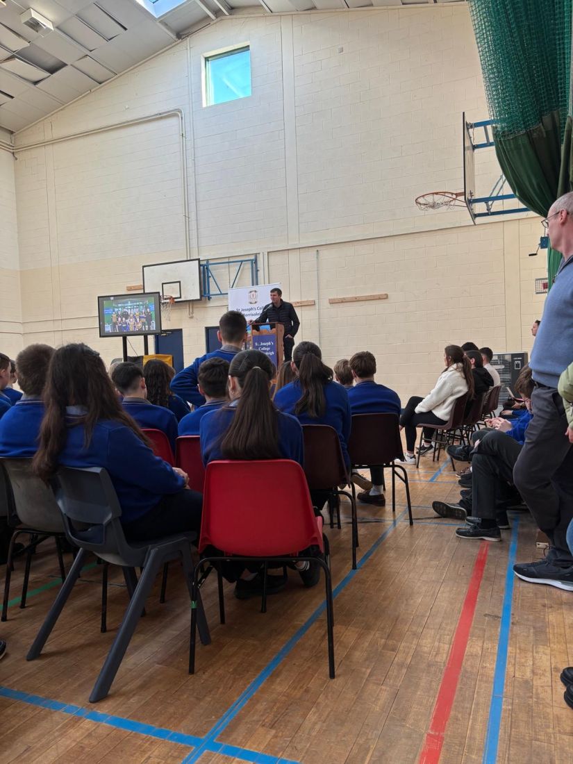 Thanks to Jim Ryan, Mikey Lavery and Mr. AJ Shannahan, for bringing the Munster and All Ireland Cups to St. Joseph's College Borrisoleigh last Thursday. Both Mikey and Jim are past pupils. Mickey’s achievements with Upperchurch Drombane, were recognised and celebrated. Mikey was a student in school when Tipperary won minor and senior in 2016, and Ms. Duignan found photos of him when those cups were brought to the school by Brendan Maher and Adam Hogan. He returned last week as an All-Ireland champion himself. Ms. Sinead Corcoran, also from Upperchurch Drombane, spoke about what this massive achievement means to the parish and their community and what they have overcome in the path to the final. Jim Ryan, Club Chairman spoke about his time in St. Joseph's College and the friendships you make through sport and in school and the immense pride he feels in his club. Congratulations to all in Upperchurch Drombane GAA Club.