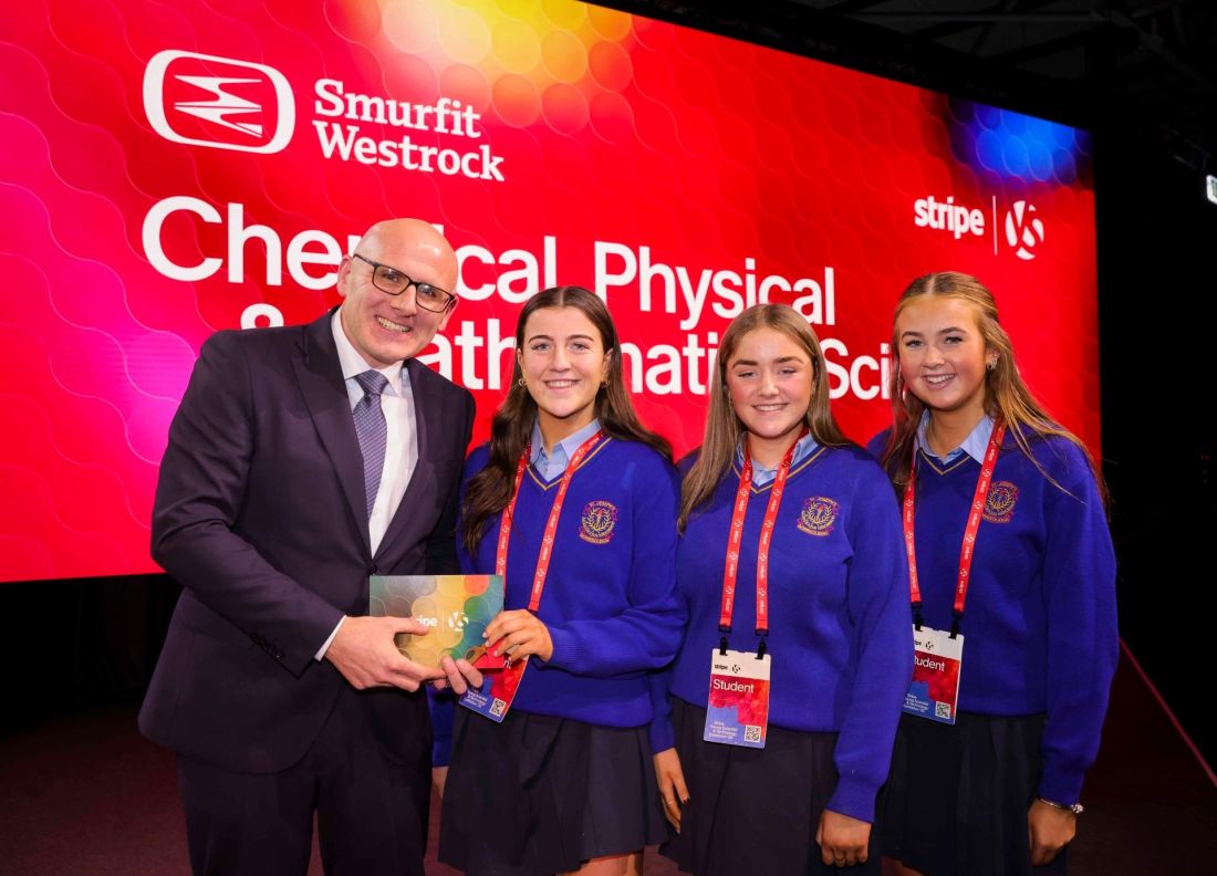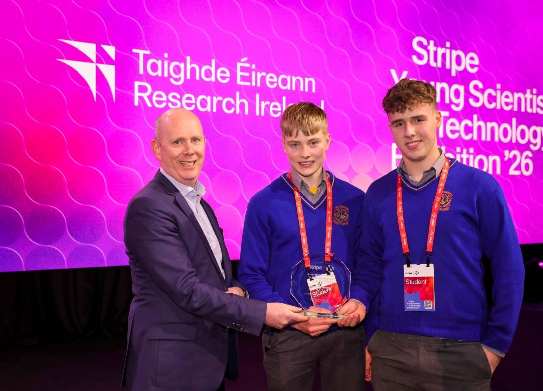 St Joseph’s College students were recognised across several categories. James Maher and Daniel Ryan Begley won the Research Ireland Societal Challenge Award for their investigation into protecting native Irish honey bees from the invasive Vespa velutina using sound waves. In addition,  Luke Ryan, Daniel Groome and Jack Groome — placed 2nd Intermediate Group (Health & Wellbeing) for their project mapping care gaps in an ageing Irish population. Meanwhile, Lucy Rabbitte, Aoibhe Hassett and Anna Meehan secured 2nd Intermediate Group (Chemical, Physical & Mathematical Sciences) for their study on how landing techniques in sport affect ACL strain. To round off a very successful event, Ms Gorey was awarded the Biological and Ecological Educator of Excellence Award